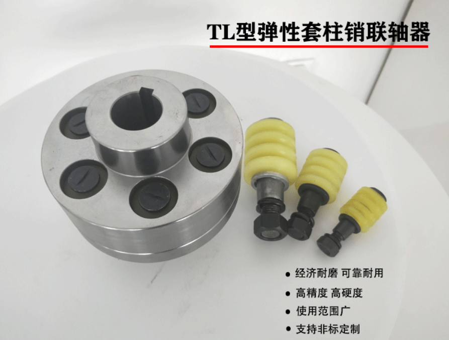 弹性套柱销联轴器在两半联轴器凸缘TL内装有弹性套(橡胶材料)的柱销,以实现两半联轴器的连接。弹性套柱销联轴器曾经是应用最广泛的联轴器。早在20世纪50年代末期即已制订为机械部标准。JB108一1960弹性圈柱的销联轴器,是我国第一个部标准联轴器 。